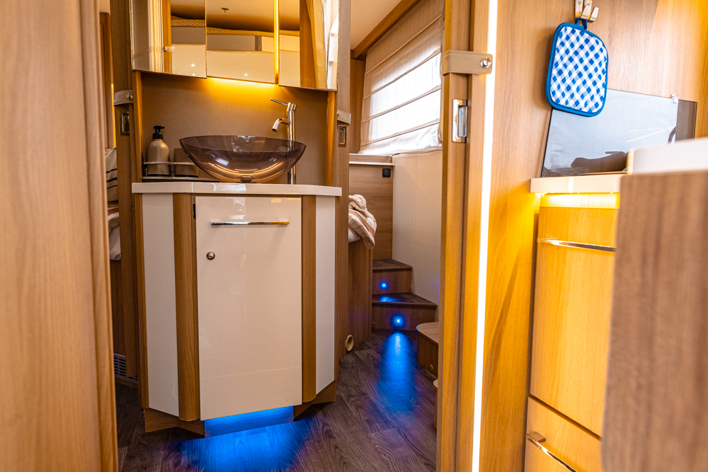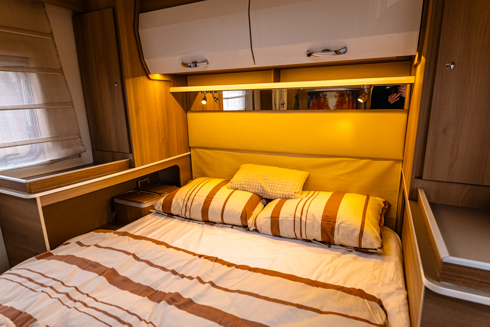 Kényelmes franciaágy. Hangulatos belső világítás. Ideális romantikus utazásra vagy családi kiruccanásra, de egy 6 fős baráti társaság számára is tökéletes útitárs lehet.